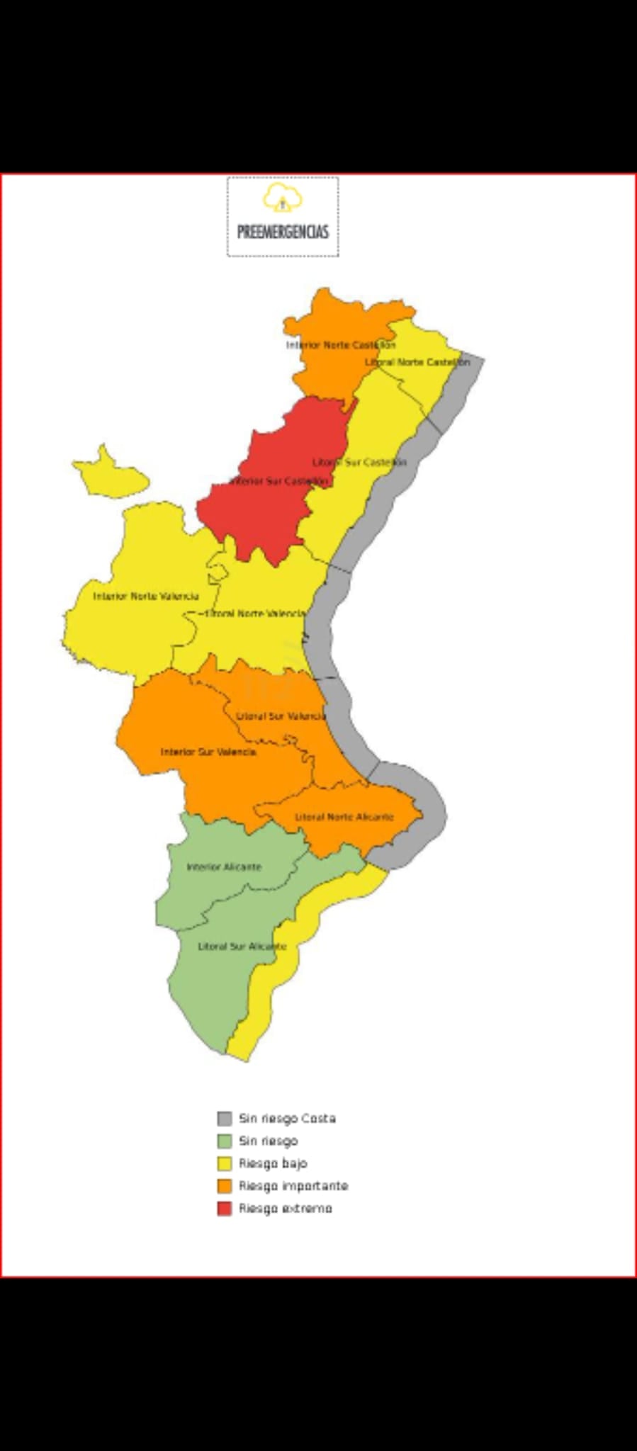 La alerta amarilla se ha transformado en naranja para todo el litoral norte esta tarde, en el último boletín del Centro de Coordinación de Emergencias. Aunque se preveía que no pasara a naranja hasta las seis de la tarde del martes, según AEMET, la alerta naranja está ya en vigor y se ha establecido Emergencia situación 0 por inundaciones en el litoral norte de la provincia.